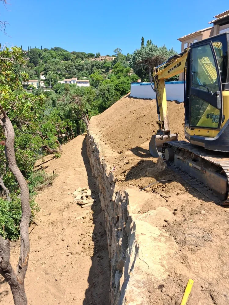 Grâce à son expertise en enrochement, RCVA BTP stabilise les terrains pentus à Golfe de Saint-Tropez. Nos interventions en stabilisation des sols et construction de soutènements garantissent des aménagements durables, sécurisant les terrains en pente à Roquebrune-sur-Argens et dans le Golfe de Saint-Tropez.
